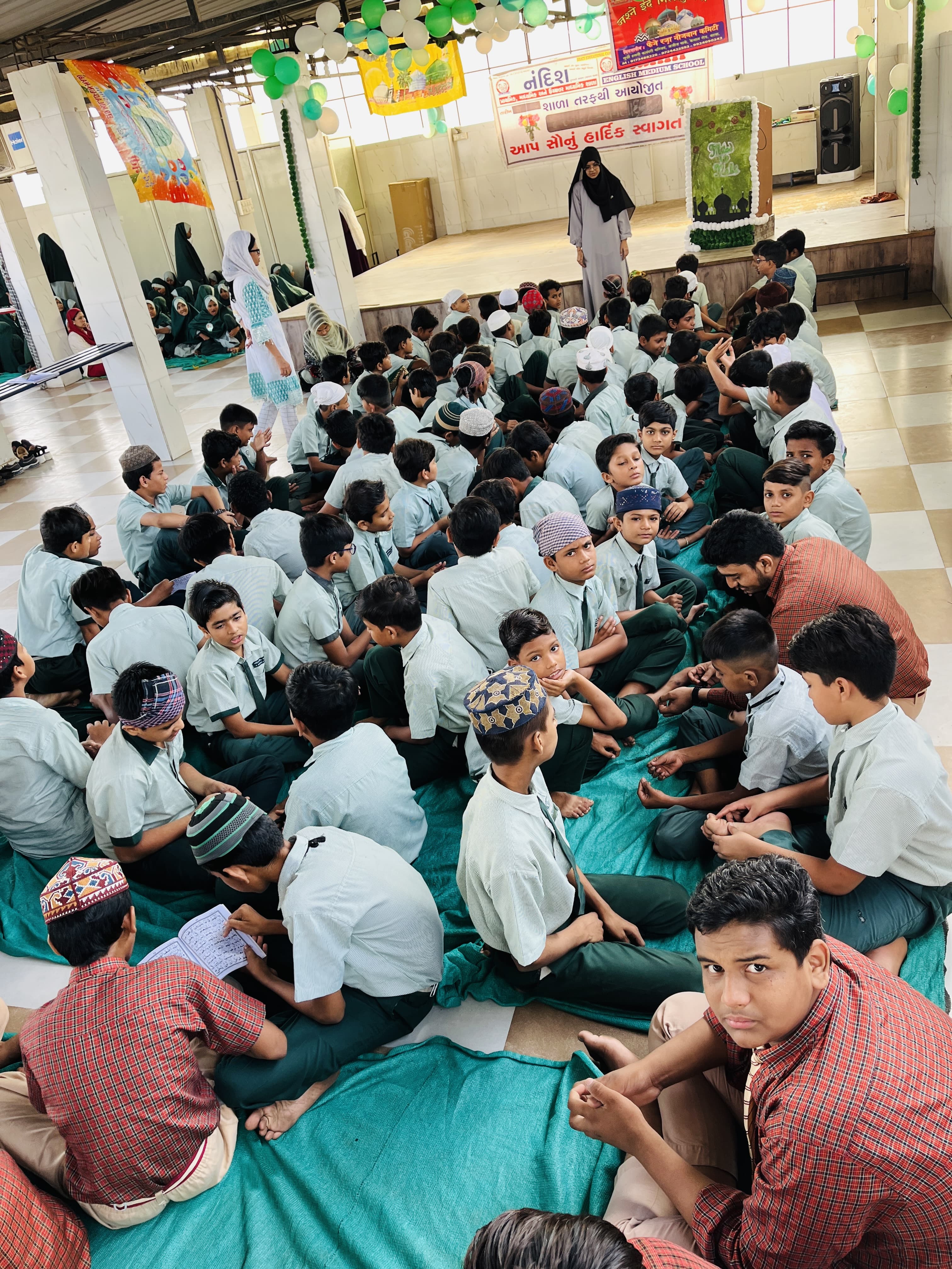 જય ભારત સાથે જાણવવાનું કે અમારી ઉપરોક્ત શાળામાં તા.14-09-24ને શનિવારના રોજ શિક્ષણના ભાગ રૂપે વિધાર્થીઓને આધ્યાત્મિક જ્ઞાન આપવા અર્થે ‘ઈદ-એ-મિલાદ’ ની ઉજવણી ઉત્સાહભેર કરવામાં આવી.